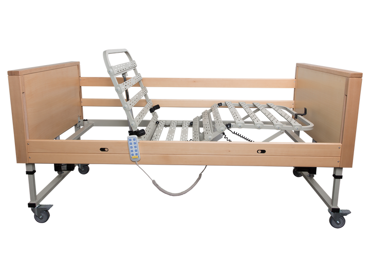 Cabeceiras e peseiros Dream robustos e com design atrativo, com motores incorporados para regulação em altura. Articulação elétrica independente das costas e pernas, através de motores elétricos de baixa tensão e comando de uso intuitivo. Motores ocultos na cabeceira e peseiro. Grades laterais em faia maciça, de subir e descer. Espaço inferior completamente livre para fácil acesso de gruas ou outros dispositivos. Com 2 suportes de acessórios na estrutura. Opcional: posição Trendelemburg e reverso. Peso máximo utilizador: 195Kg. SWL: 230Kg.