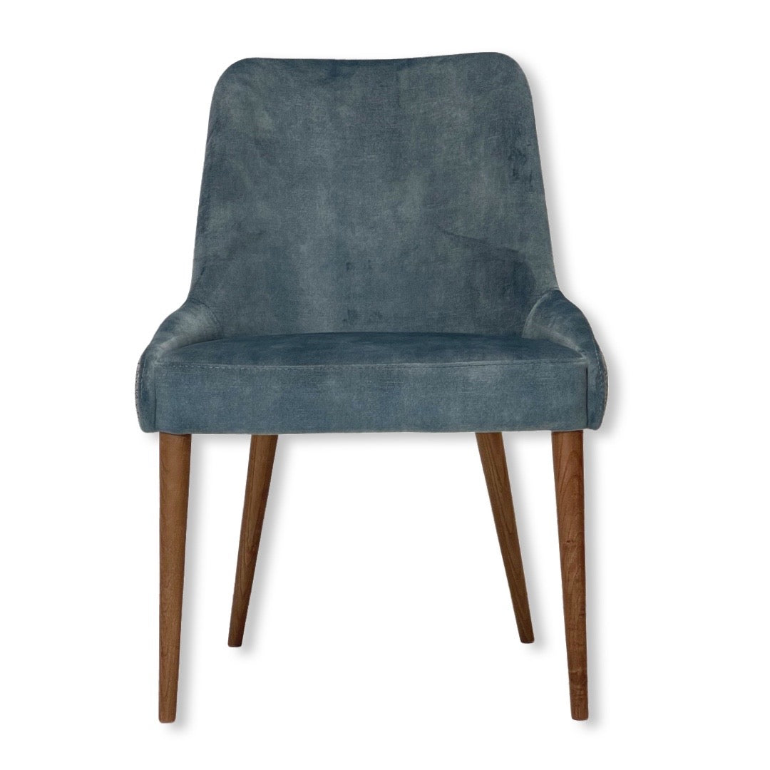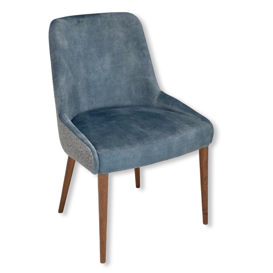 Cadeira 853 Fátima estofada com estrutura em madeira. Pés em Madeira de Freixo Maciço com Velatura Nogueira.