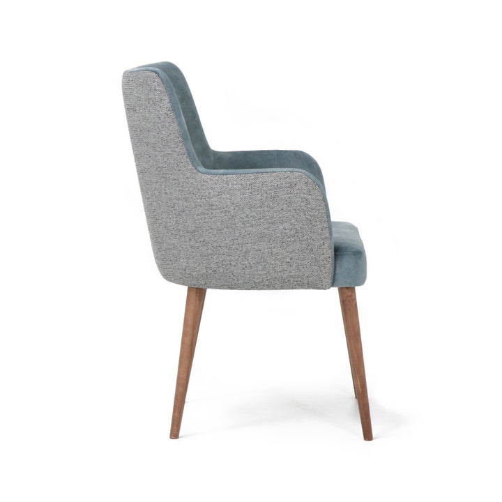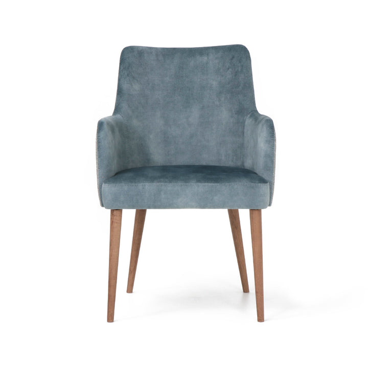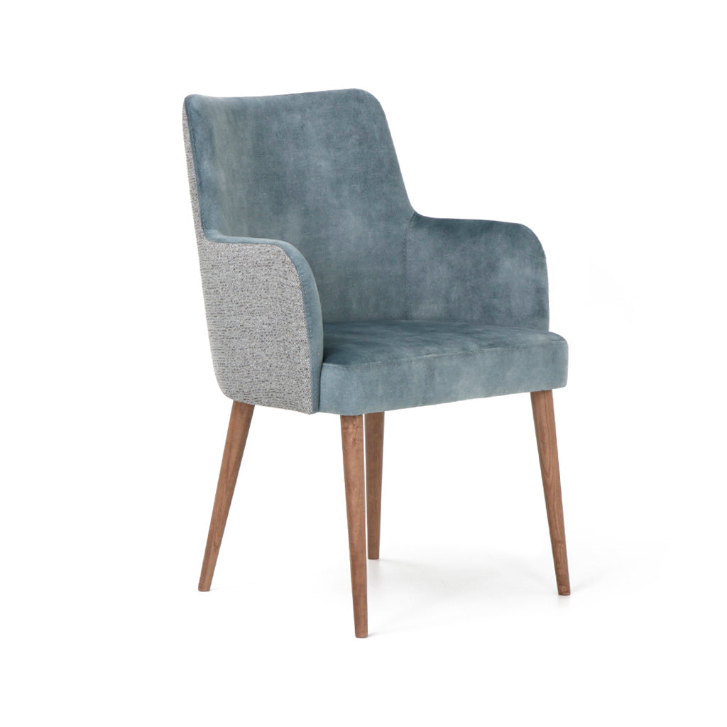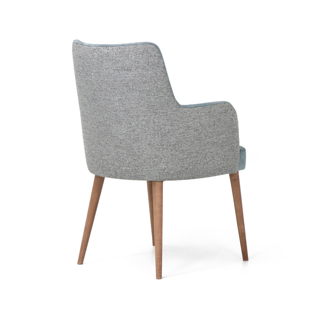 Cadeira 800 Lia estofada com estrutura em madeira. Pés em Madeira de Freixo Maciço com Velatura Nogueira.
