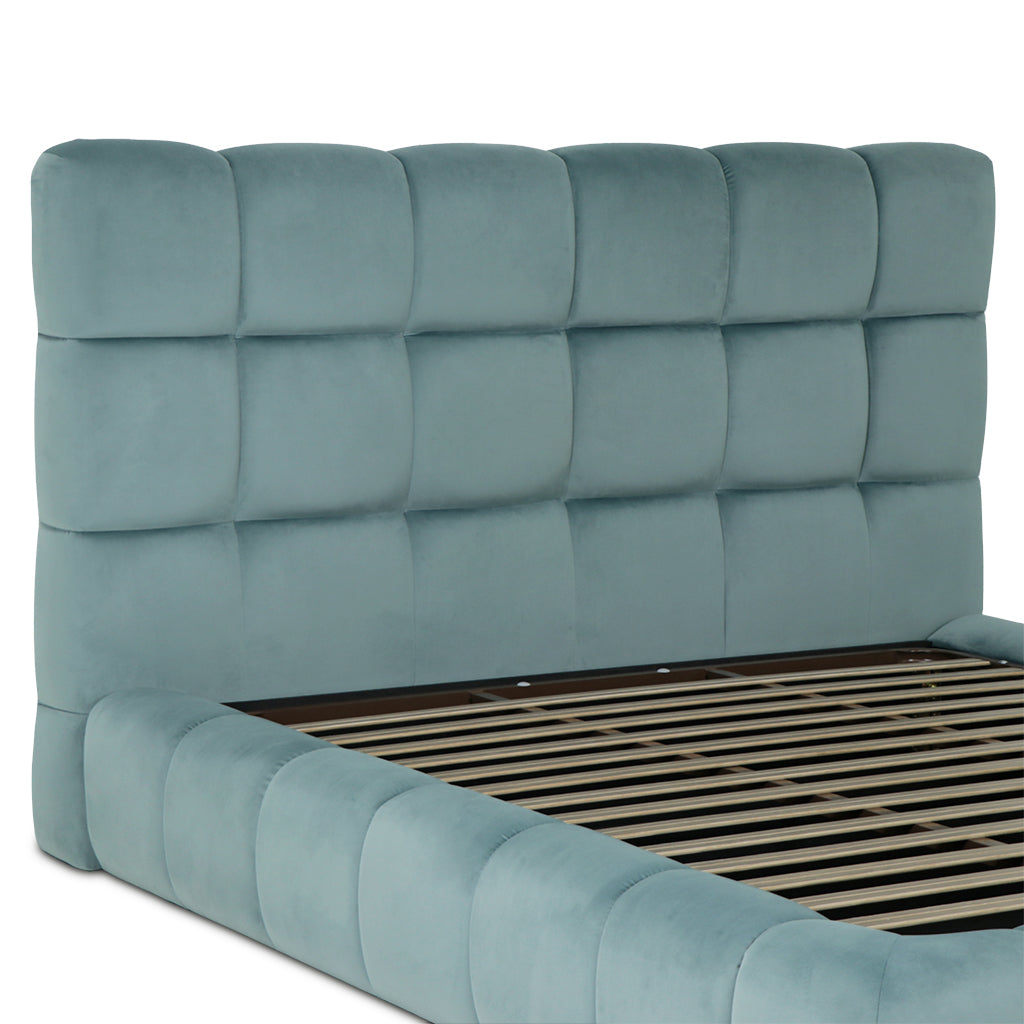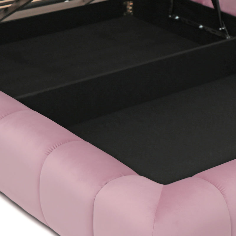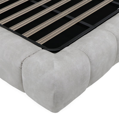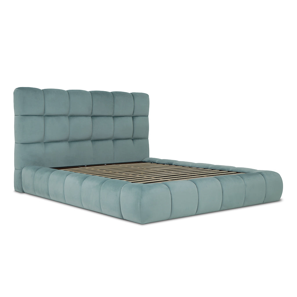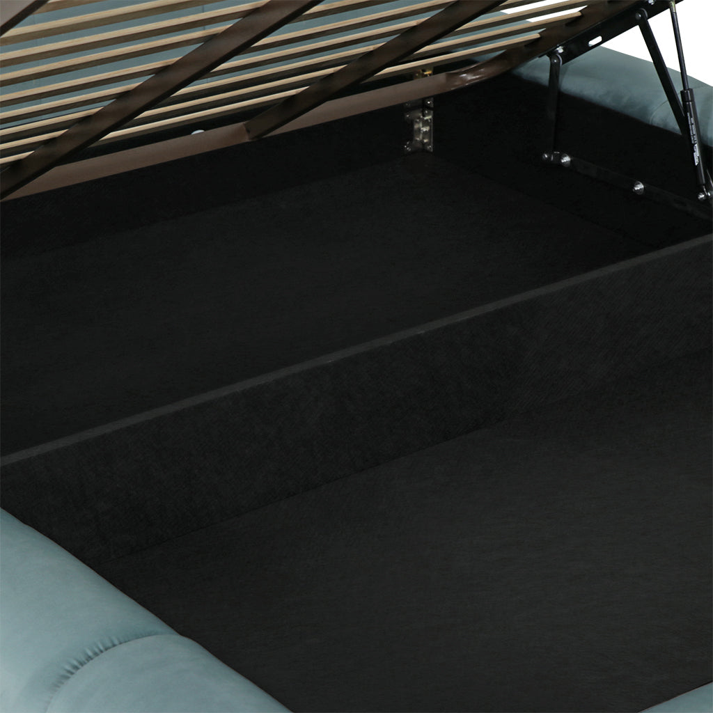 Cama Elite com estrado elevatório. Estrutura em madeira OSB3 ultra-resistente e estrado de ripas. Na parte exterior terá 40cm mais de largura e 40cm mais de comprimento do que a medida do estrado. O sommier é dividido em 4 partes e o estrado é inteiro. Inclui pés com 1cm. Este produto inclui apenas a cama (sommier + cabeceira).