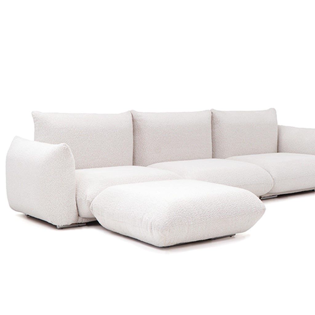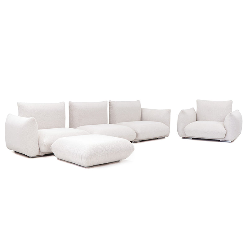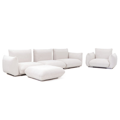 Existem 5 módulos: 2 cantos (esquerdo e direito), 1 poltrona sem braços, 1 individual (com 2 braços) e 1 puff. Combine os módulos entre si para criar um sofá ao seu gosto e ajustado ao seu espaço. Basta arrastar, juntar ou separar e encontrar a combinação perfeita.