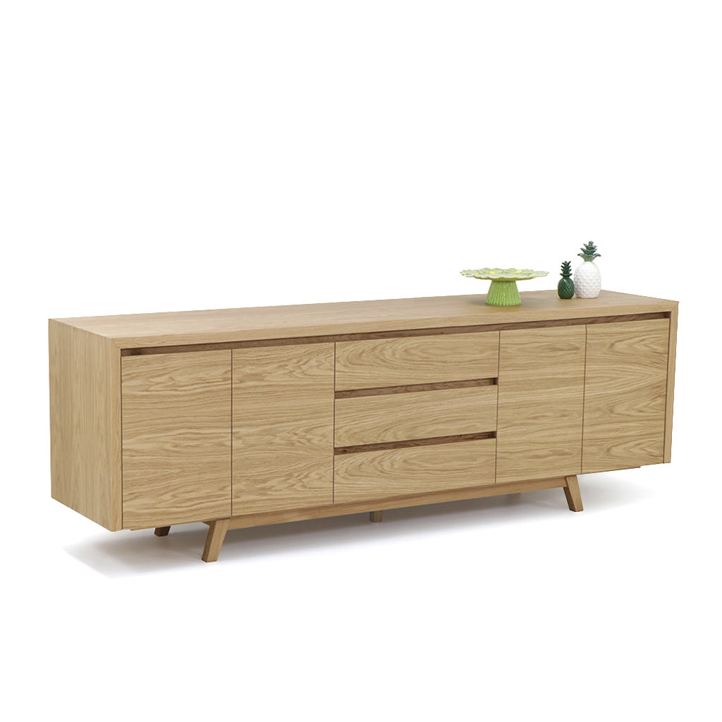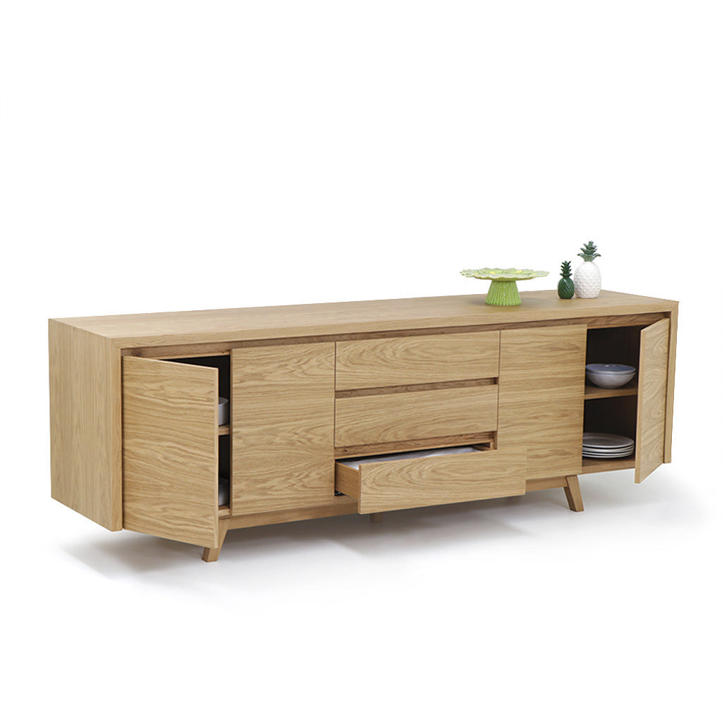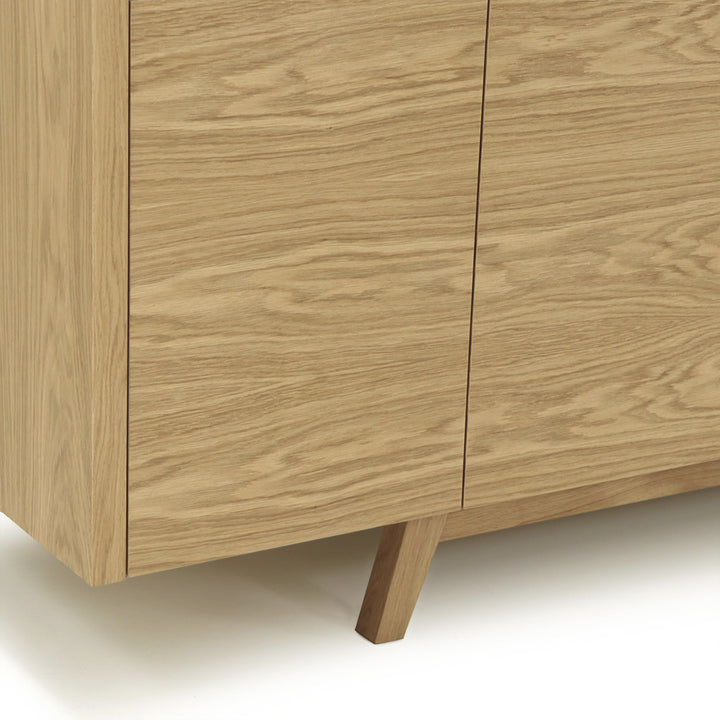 Sweden sideboard with an ultra-resistant structure in MDF and oak veneer that gives it a distinct elegance. It is also complemented with feet and other details in solid wood.