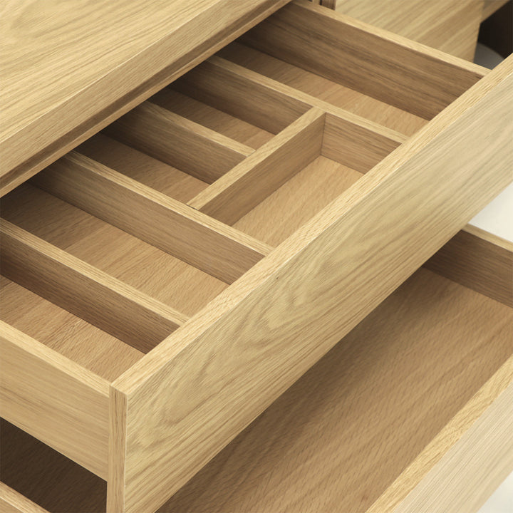 The sideboard has 4 doors and 3 drawers to make the most of your storage space. The top drawer has storage in divisions for greater organization.