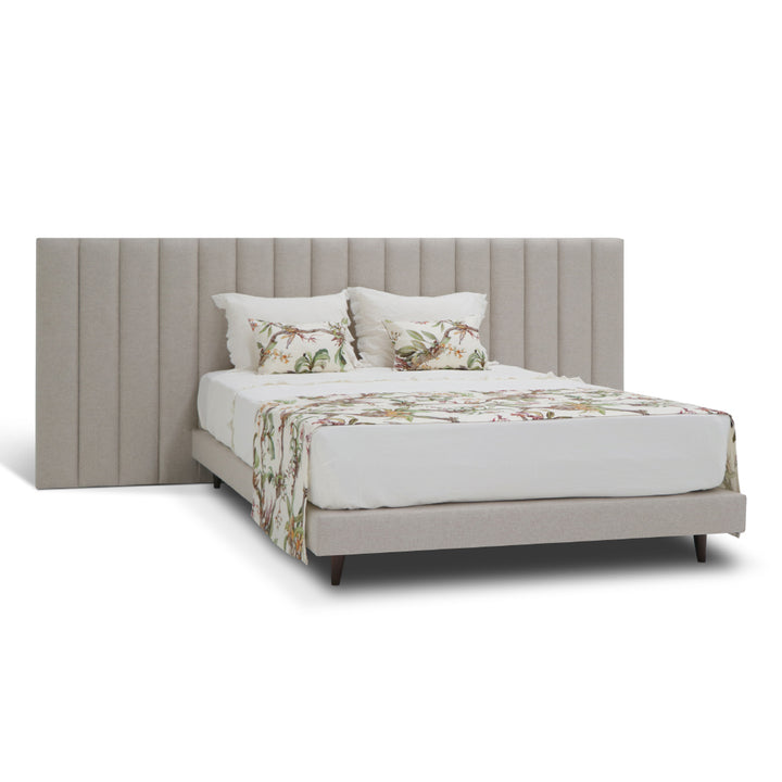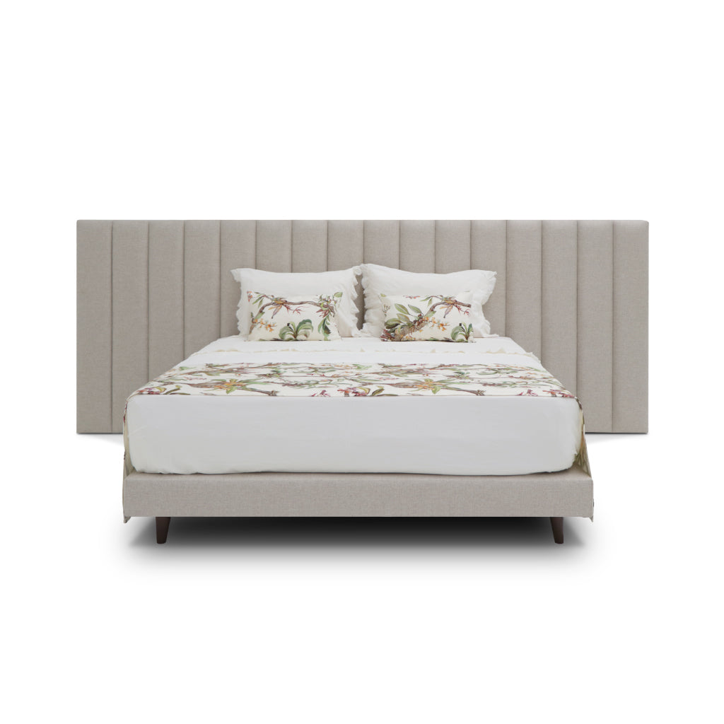 Beds designed by architect Teresa Gonçalves. Sommier frame in ultra-resistant iron and wood agglomerate with wenge feet. Headboard in vertical sections divided into two parts. This product includes only the bed (sommier + headboard).