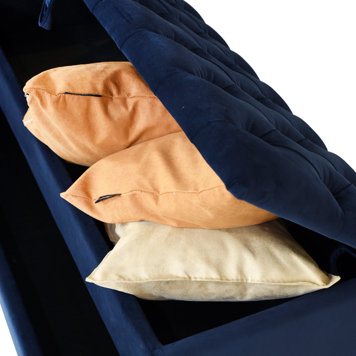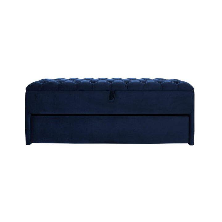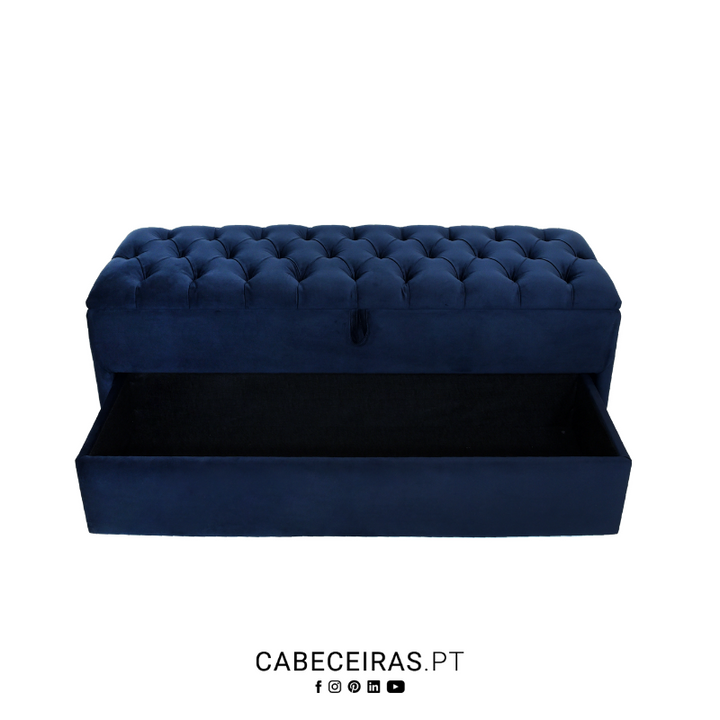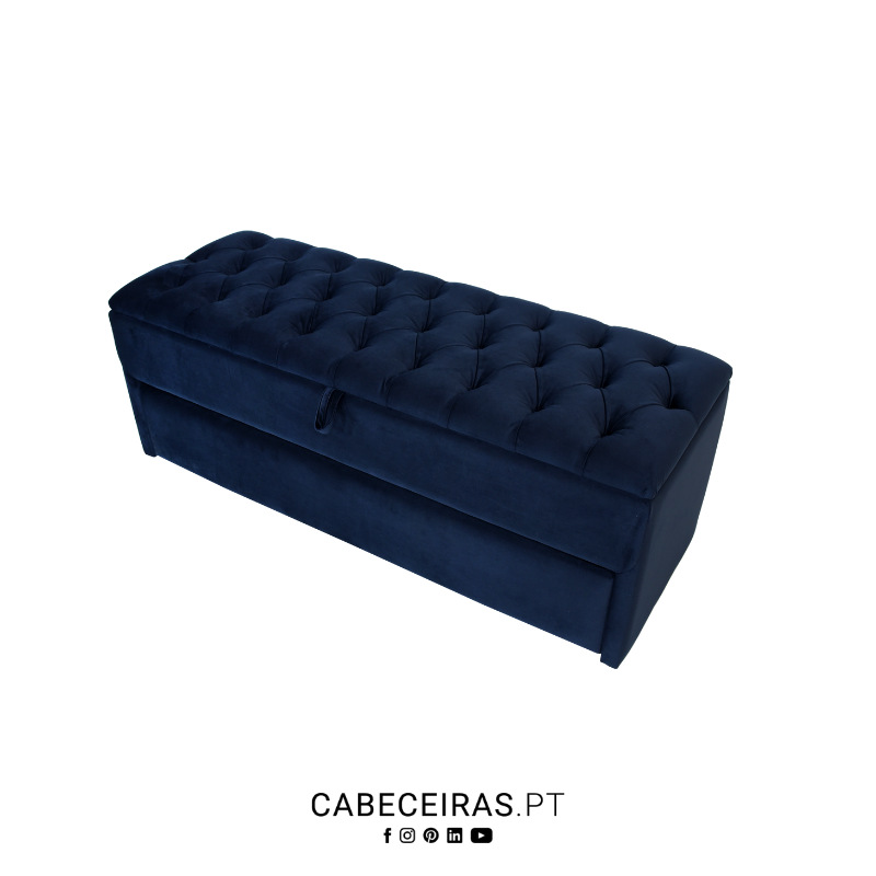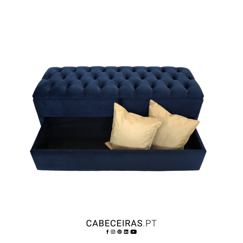 Capitone chest with drawer storage. Structure in ultra-resistant OSB3 wood. Smooth base and capitone top. Top opening for storage and front drawer. This product only includes the trunk .