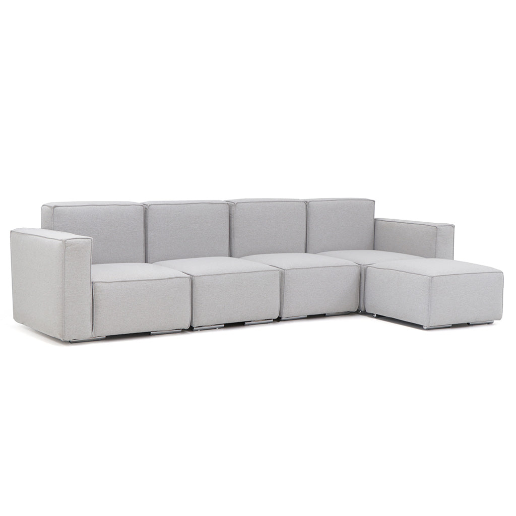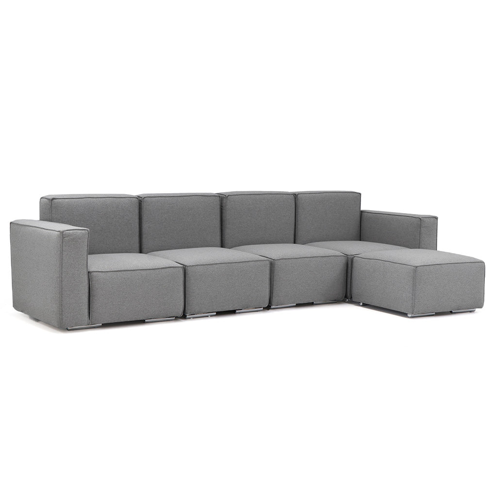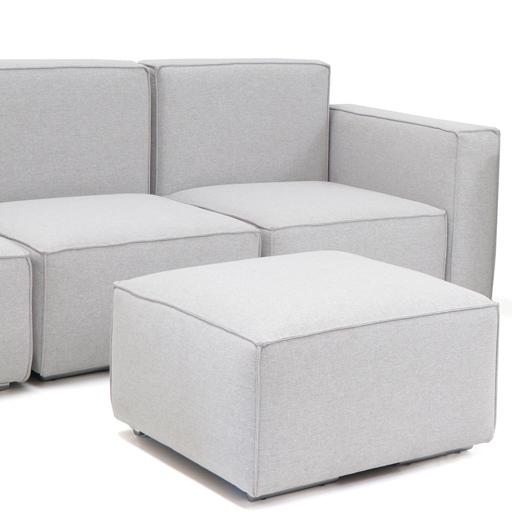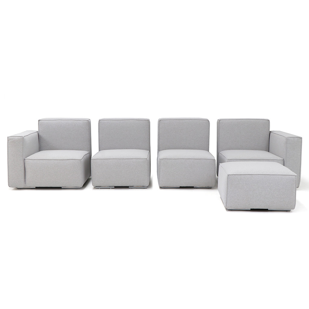 Young Modular Sofa , 100% modular. Structure in galvanized iron and certified foam. Modular sofa that allows several combinations, consisting of 5 pieces: 2 corners, 2 armchairs and 1 pouf. This product does not include decorative pillows.