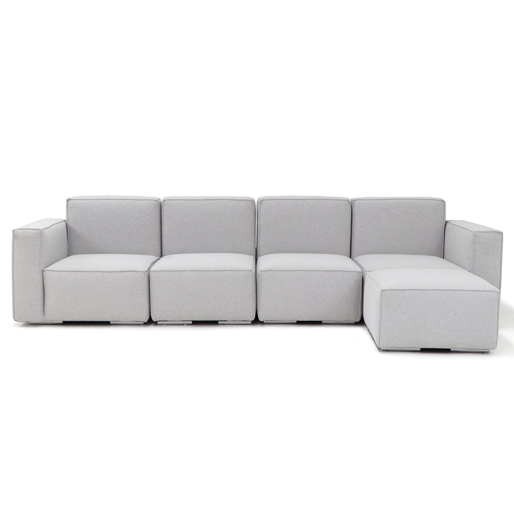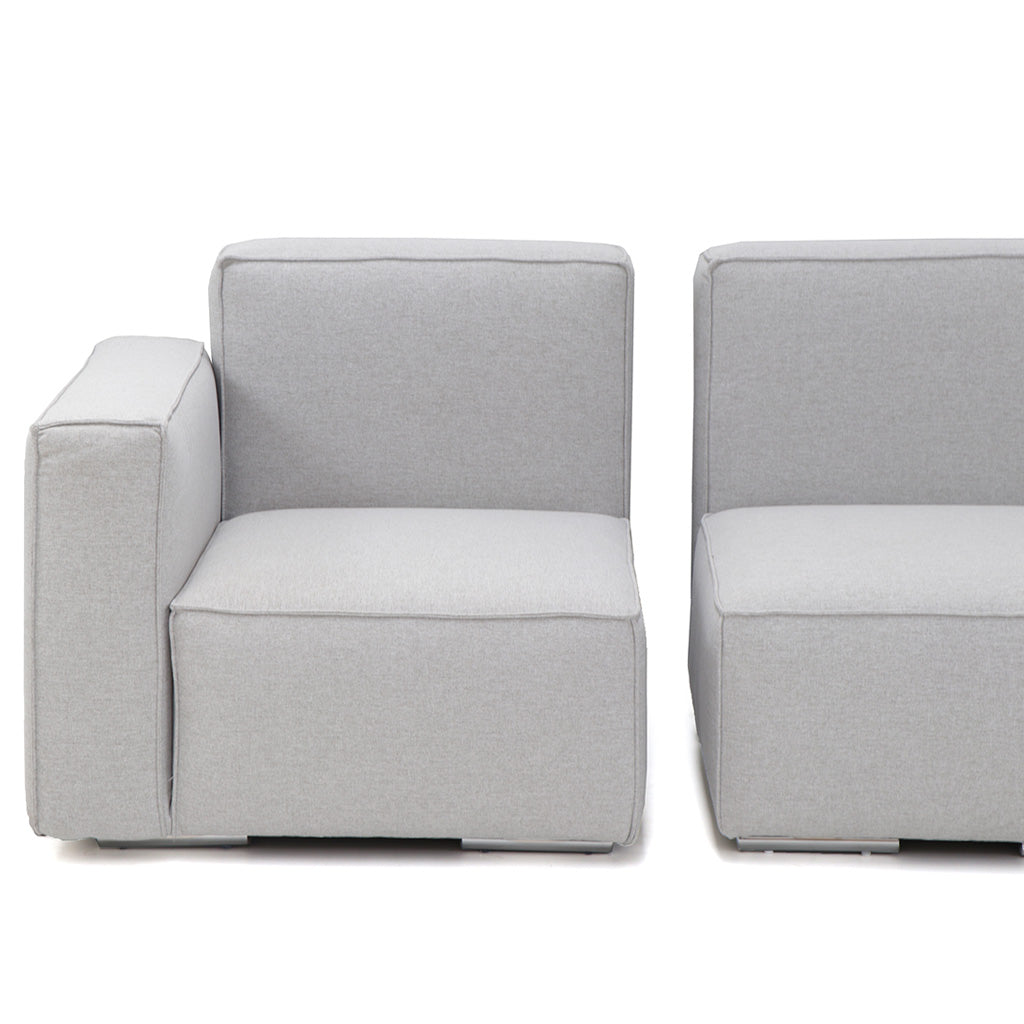 There are 5 modules: 2 corners (left and right), 1 armchair without arms, 1 individual (with 2 arms) and 1 puff. Combine the modules with each other to create a sofa to your liking and adjusted to your space. Just drag, join or separate and find the perfect match.