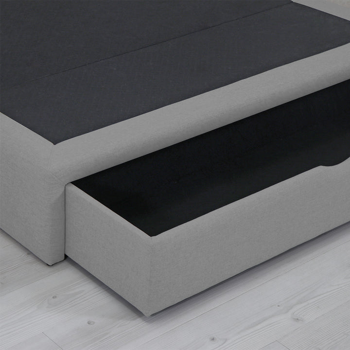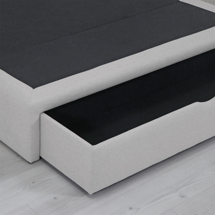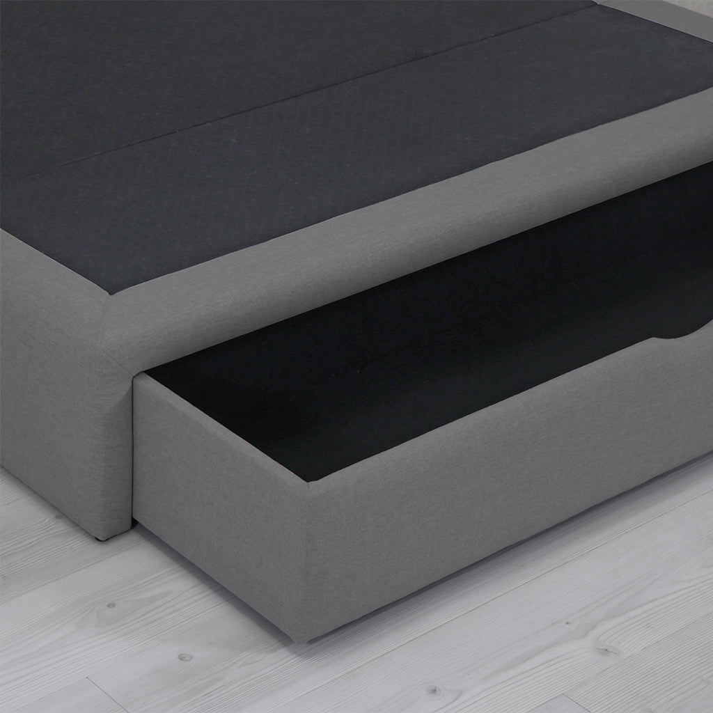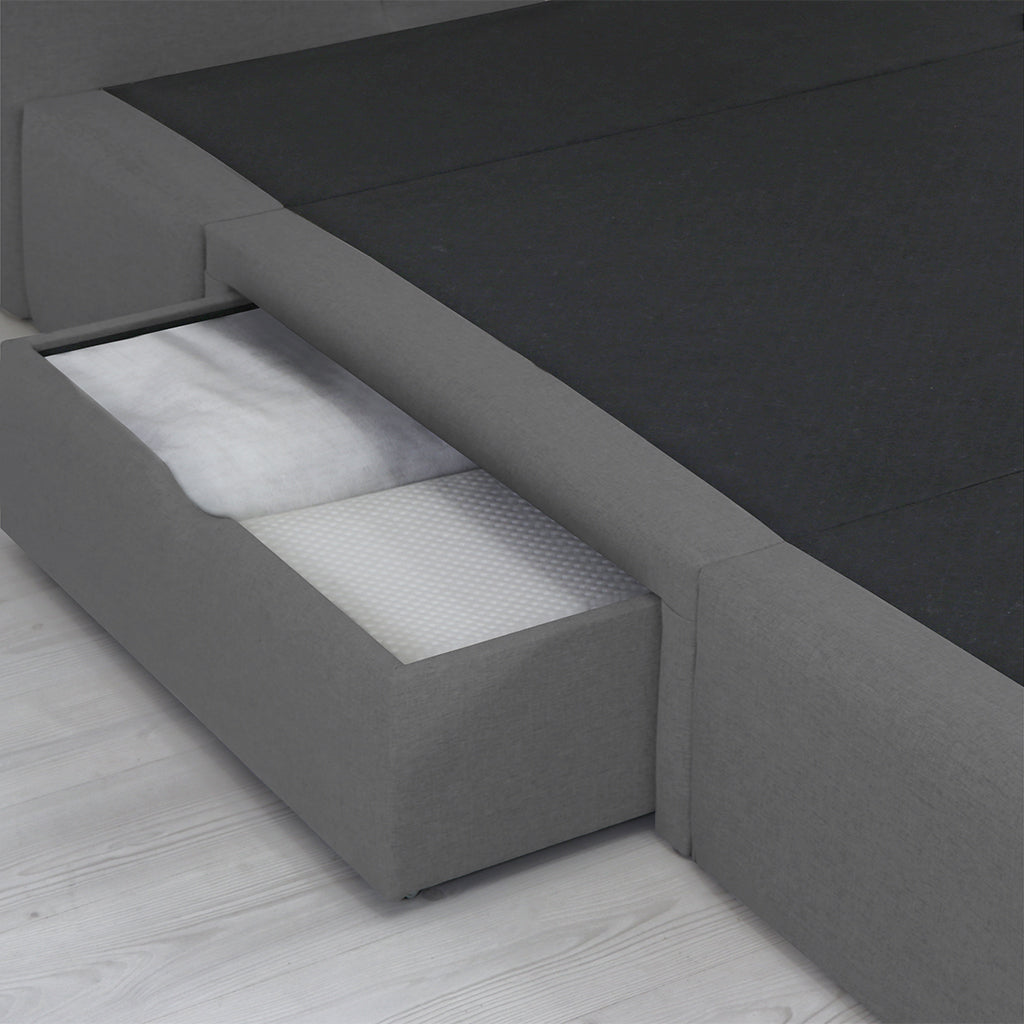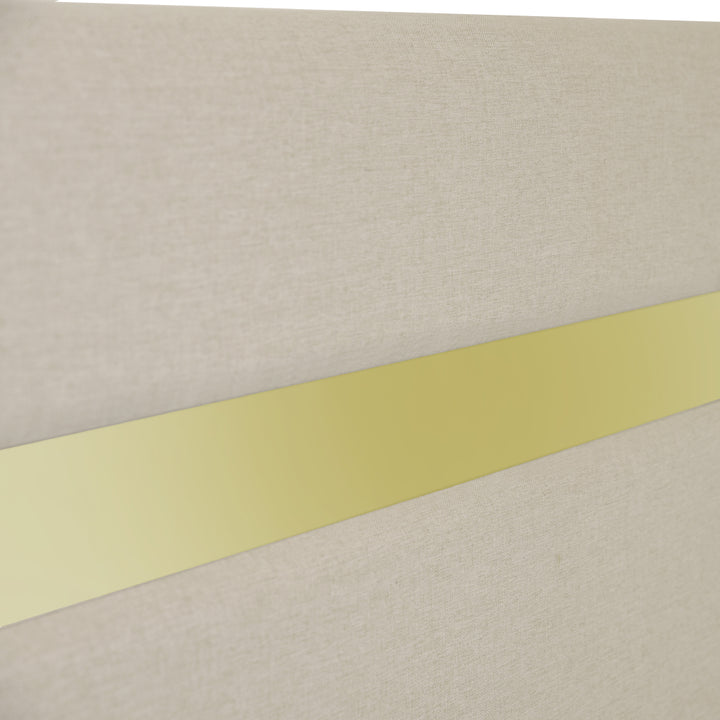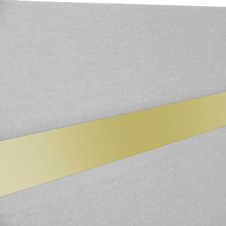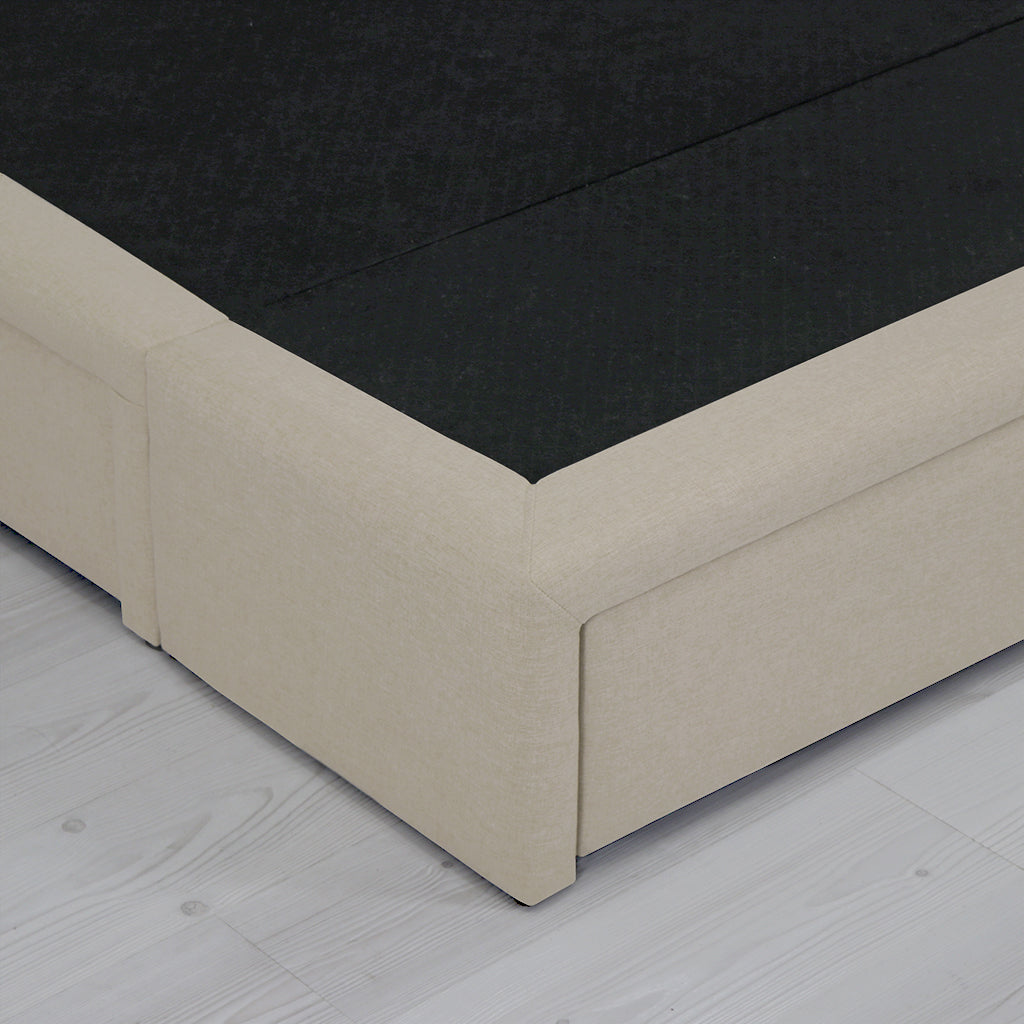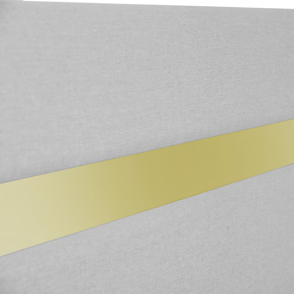 Bed with 3-drawer storage. Bed base frame in ultra-resistant plywood and chipboard. Headboard with gold-tone metal detailing without joints. The bed base is divided into 3 parts. This product only includes the bed (bed base + headboard).