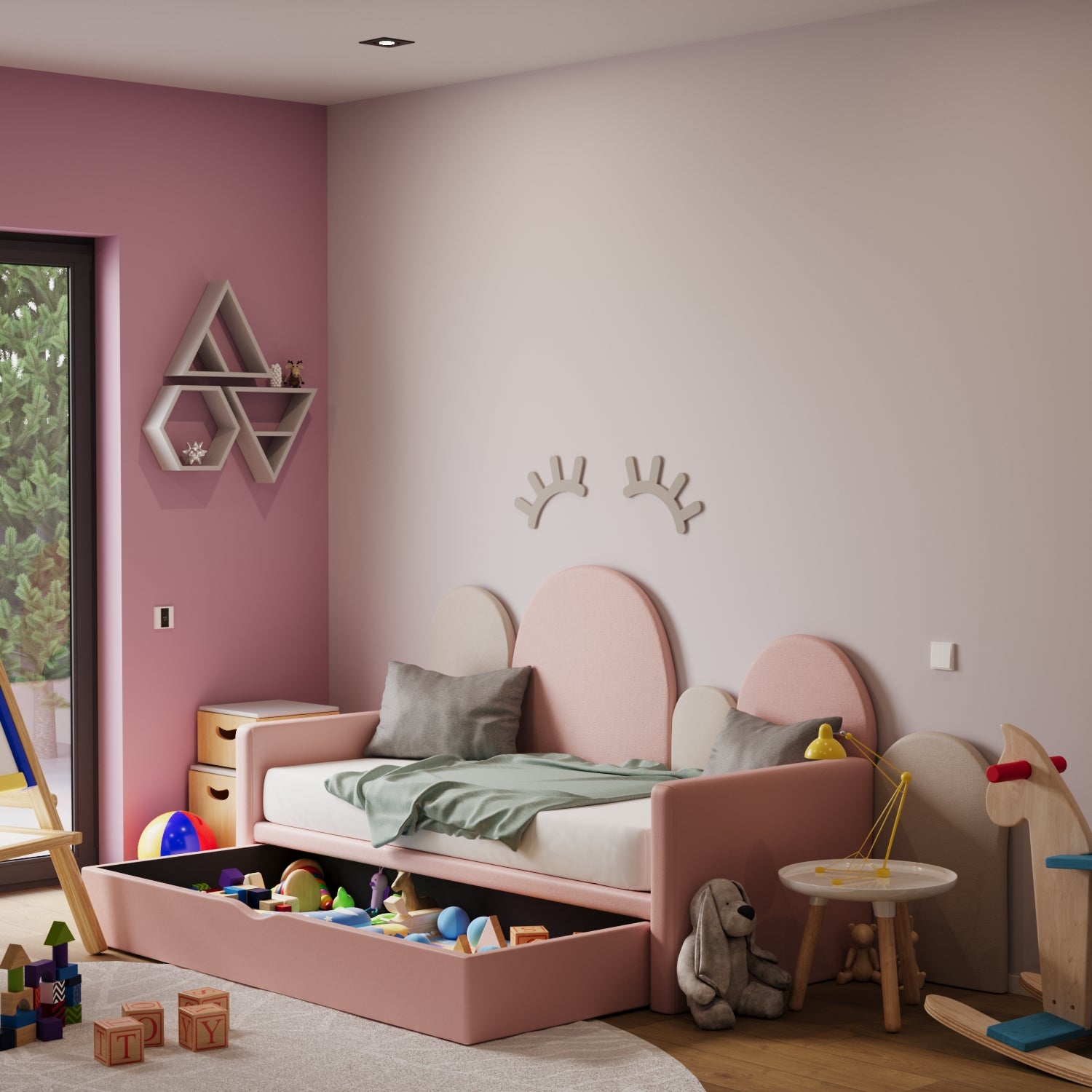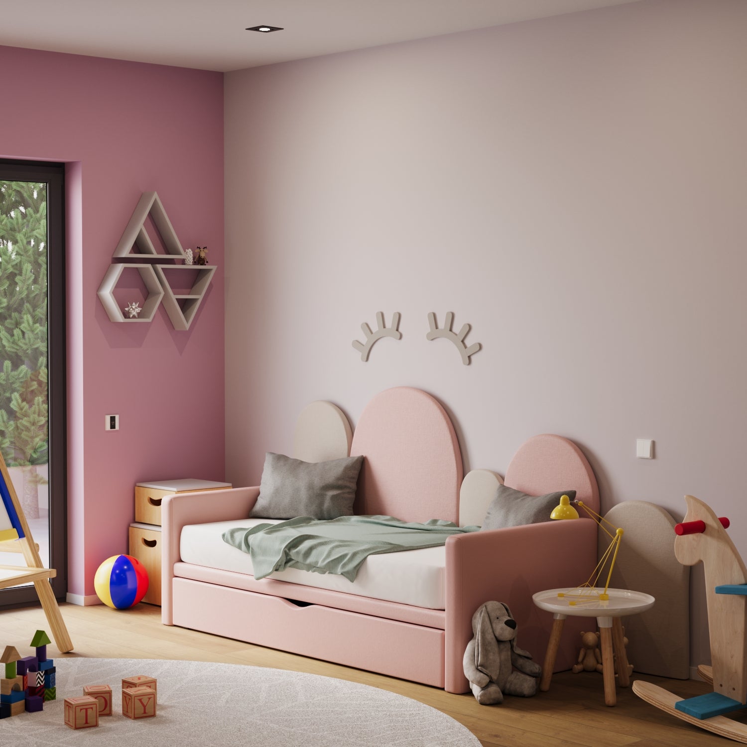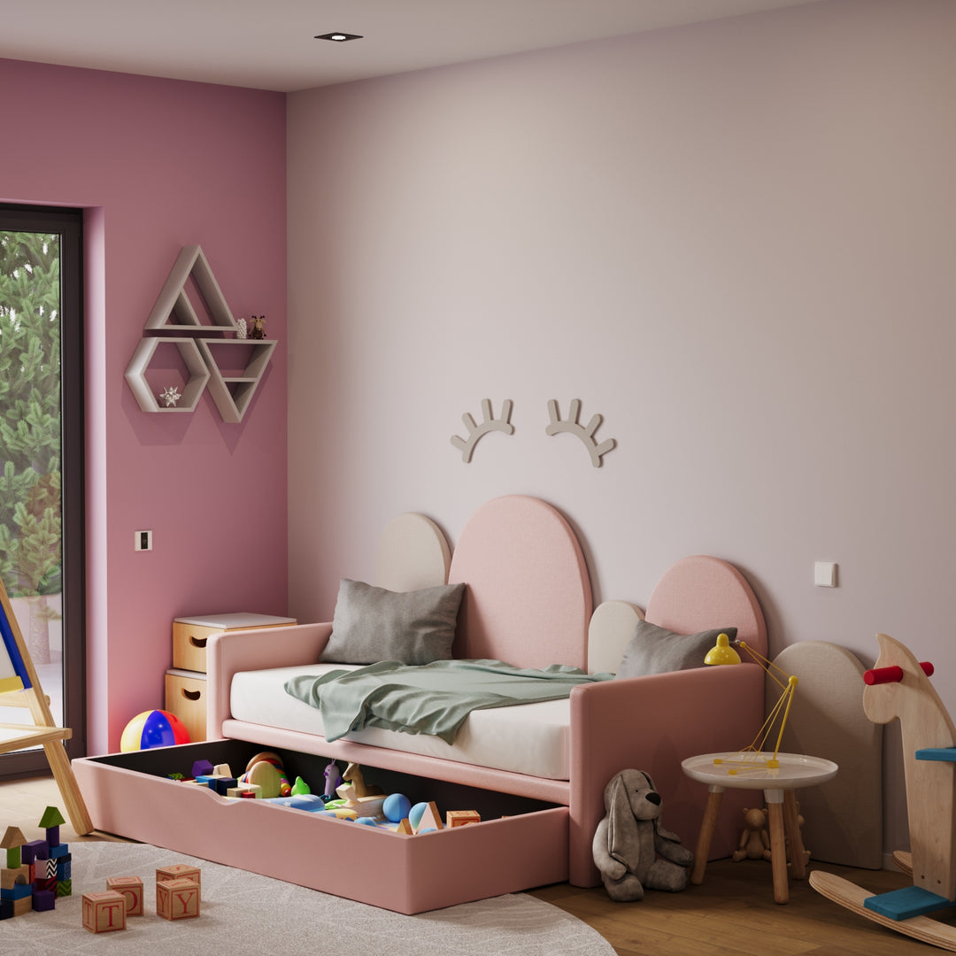 The Glitter Kids Bed was created in collaboration with the irresistible Carina Caldeira. With a unique style, this bed is designed to transform a children's room into a magical and inspiring space. The headboard with waves brings personality and a childish touch so that little ones feel comfort and warmth every night. The drawer is essential for tidying and organizing the room, but it can also be used to place an extra mattress whenever you need it.