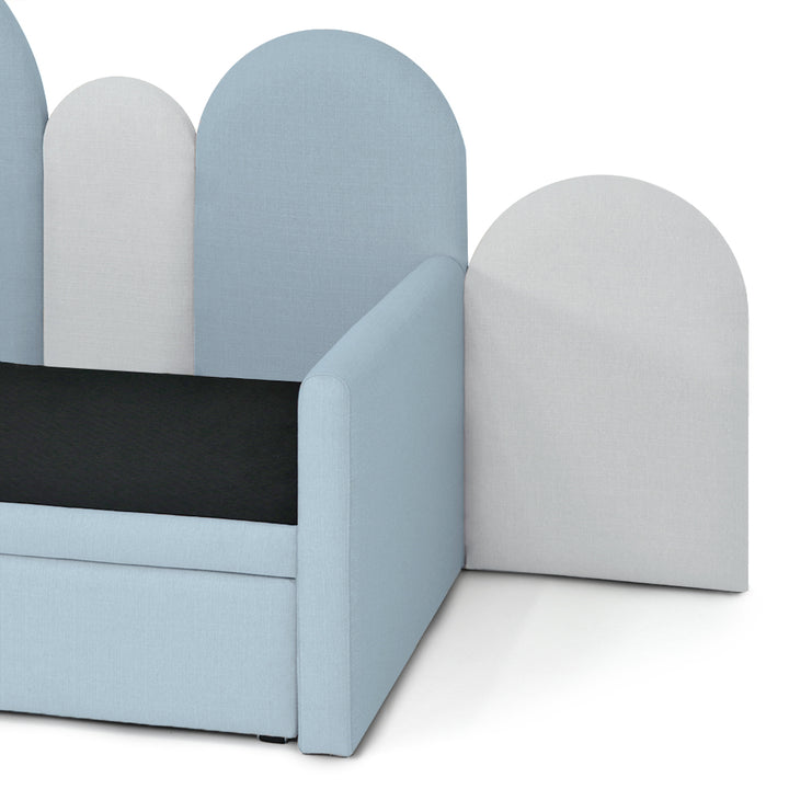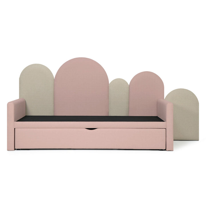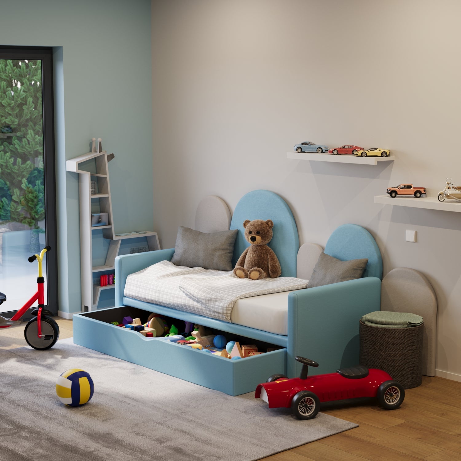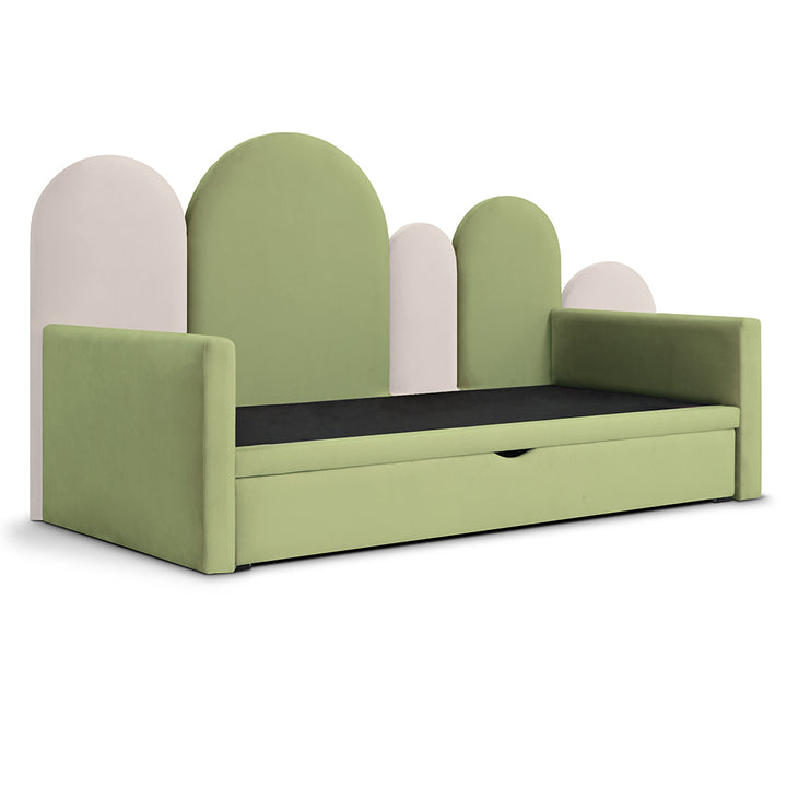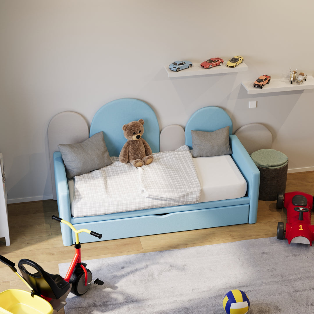 The Glitter Kids Bed was created in collaboration with the irresistible Carina Caldeira. With a unique style, this bed is designed to transform a children's room into a magical and inspiring space. The headboard with waves brings personality and a childish touch so that little ones feel comfort and warmth every night. The drawer is essential for tidying and organizing the room, but it can also be used to place an extra mattress whenever you need it.