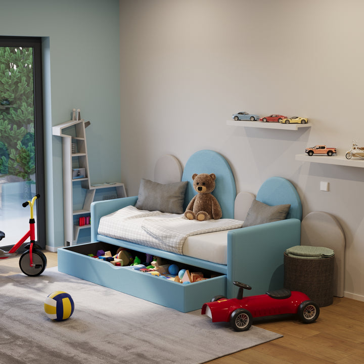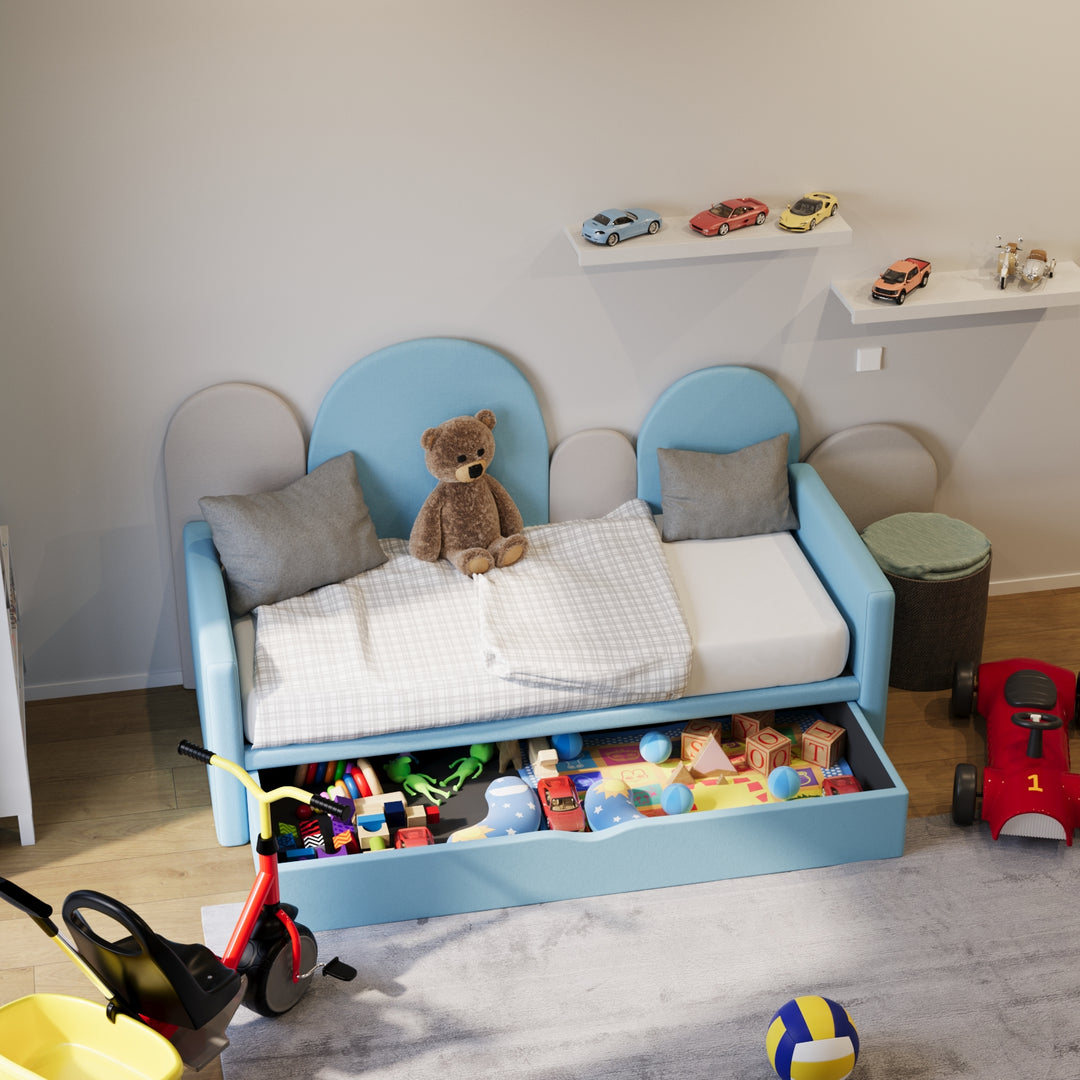 This bed is specially designed for little ones to enjoy in their room. The bottom drawer allows you to gain space to store all your toys or add an extra mattress with a friend 💫