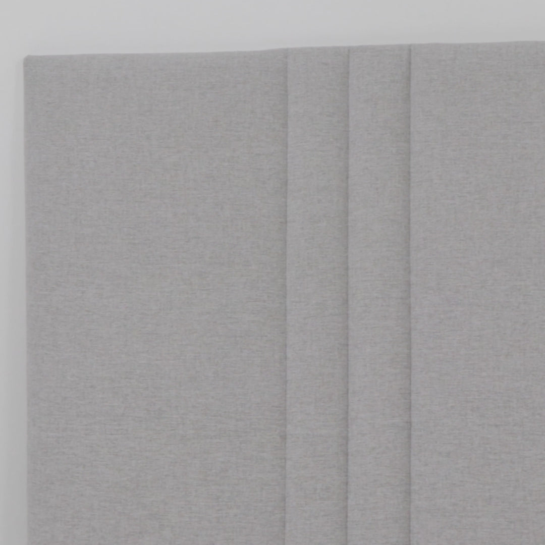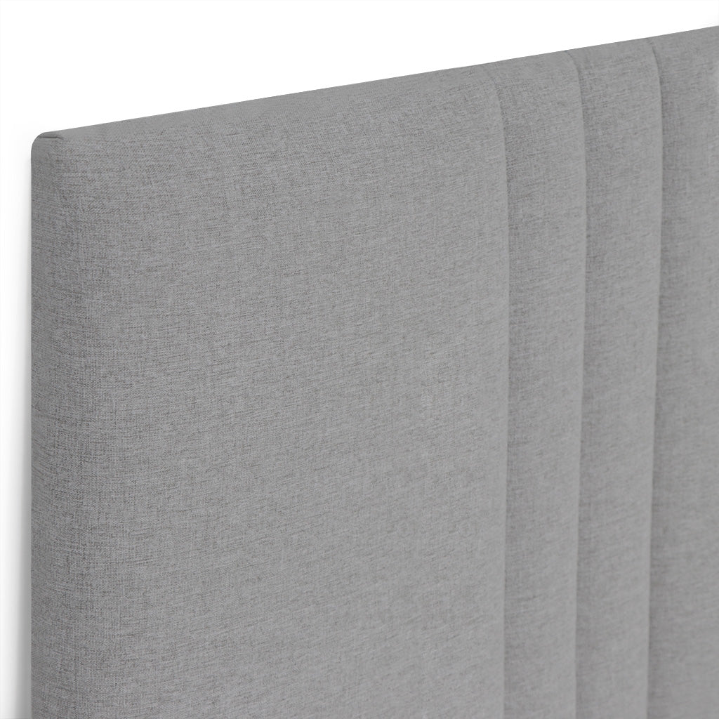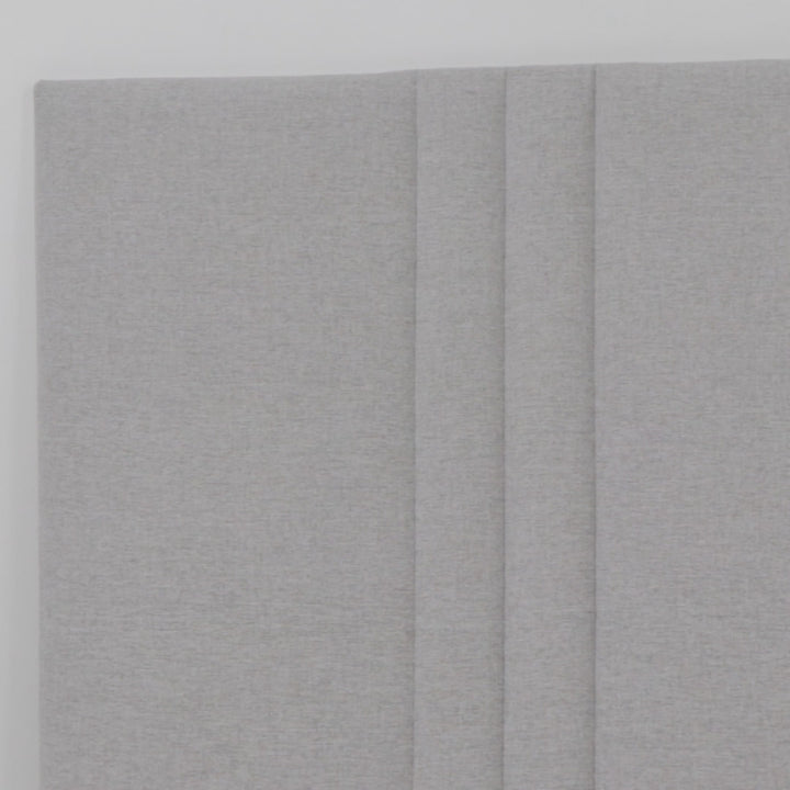Cabeceira de cama Lívia Eco, produzida com aproveitamento de sobras totalmente aptas e materiais ecológicos. Estrutura em aglomerado de madeira, espuma e tecido. Cabeceira com 6 linhas verticais de costura corrida. Todos os materiais são certificados.