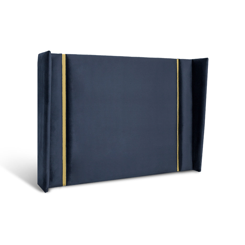 Cabeceiras de cama Métis. Estrutura em aglomerado de madeira, espuma, tecido e metal dourado sem juntas. Todos os materiais são certificados. Espessura de 7cm (aproximadamente) e no exterior tem aproximadamente mais 15cm da medida entre as abas. Este produto apenas inclui a cabeceira de cama.