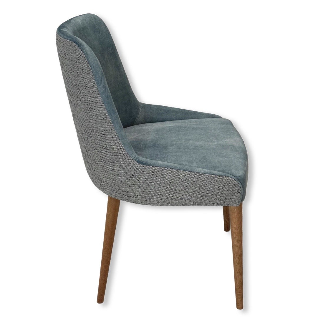 Cadeira 853 Fátima estofada com estrutura em madeira. Pés em Madeira de Freixo Maciço com Velatura Nogueira.