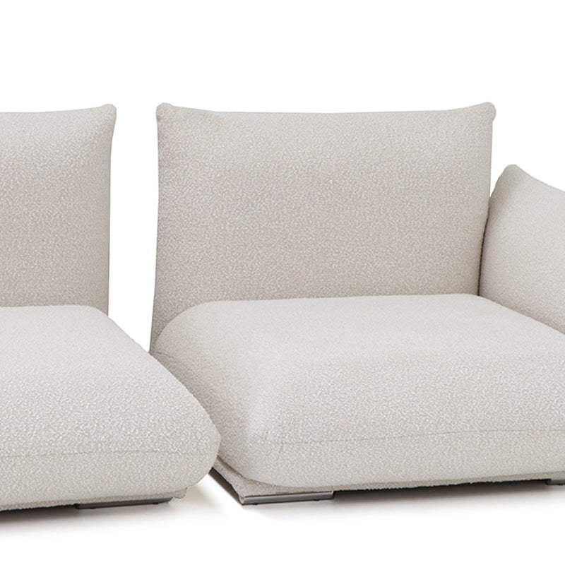 Existem 5 módulos: 2 cantos (esquerdo e direito), 1 poltrona sem braços, 1 individual (com 2 braços) e 1 puff. Combine os módulos entre si para criar um sofá ao seu gosto e ajustado ao seu espaço. Basta arrastar, juntar ou separar e encontrar a combinação perfeita.