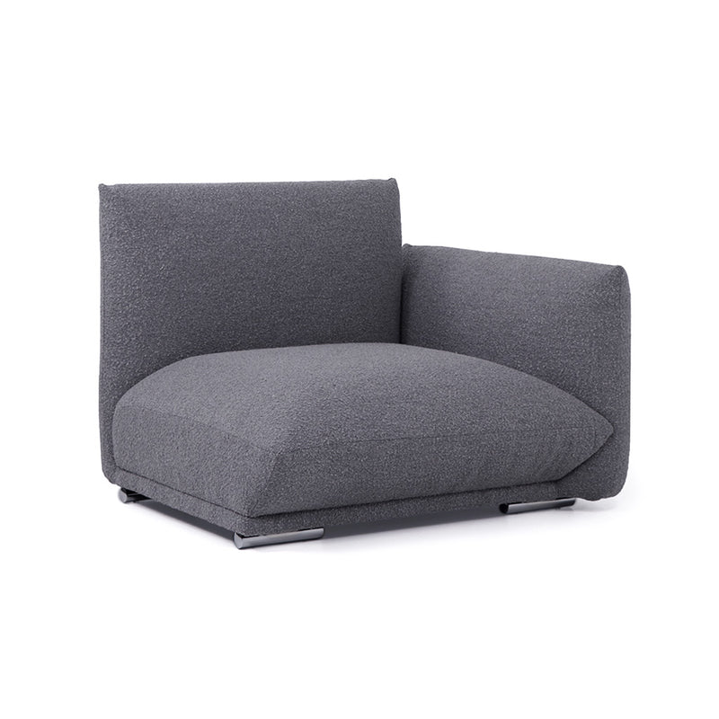 Existem 5 módulos: 2 cantos (esquerdo e direito), 1 poltrona sem braços, 1 individual (com 2 braços) e 1 puff. Combine os módulos entre si para criar um sofá ao seu gosto e ajustado ao seu espaço. Basta arrastar, juntar ou separar e encontrar a combinação perfeita.