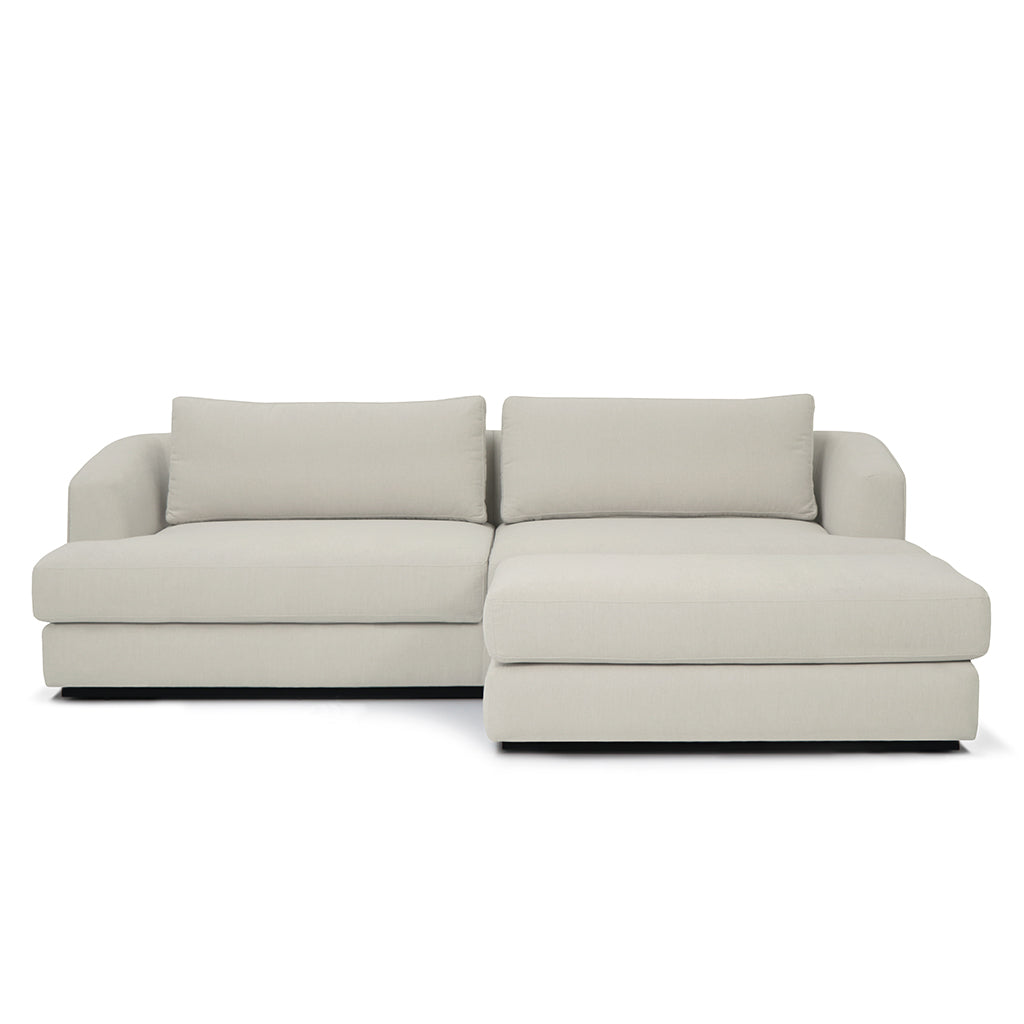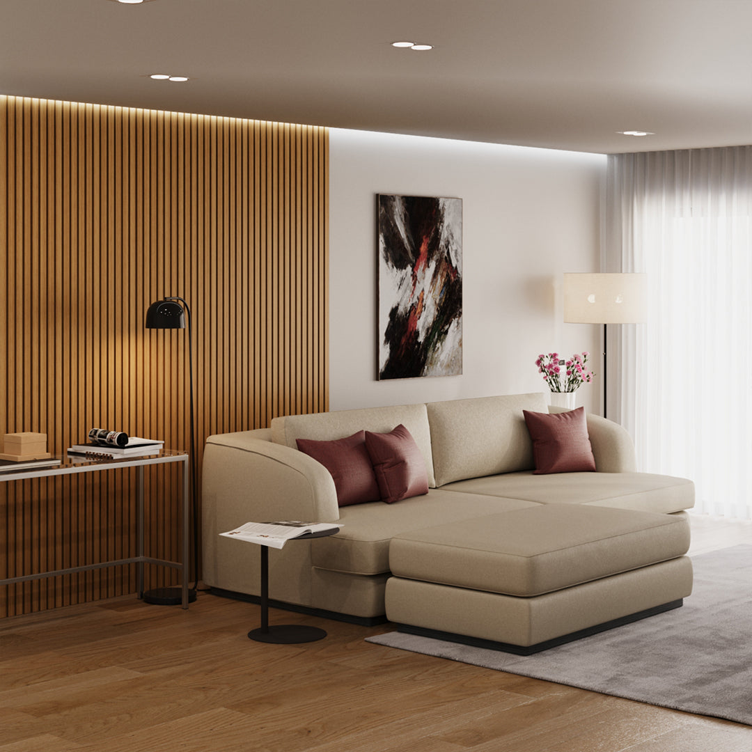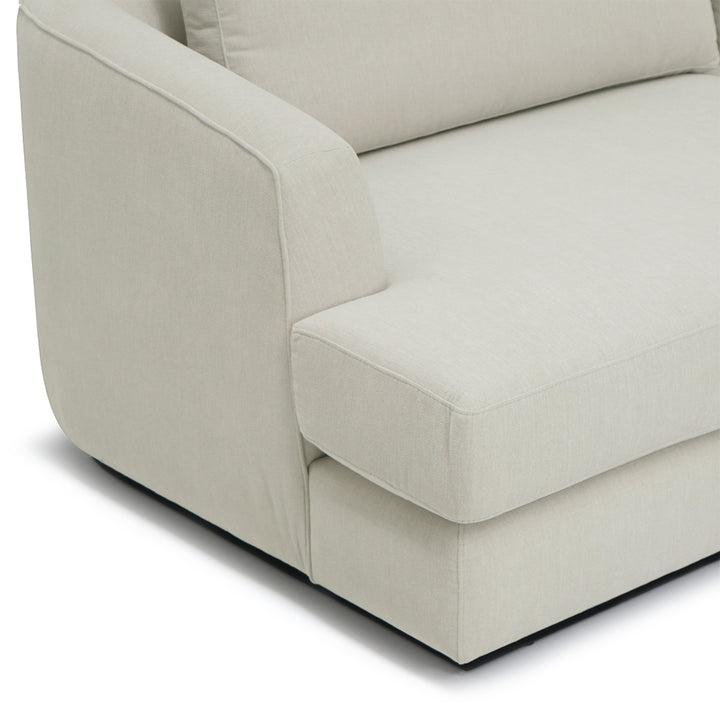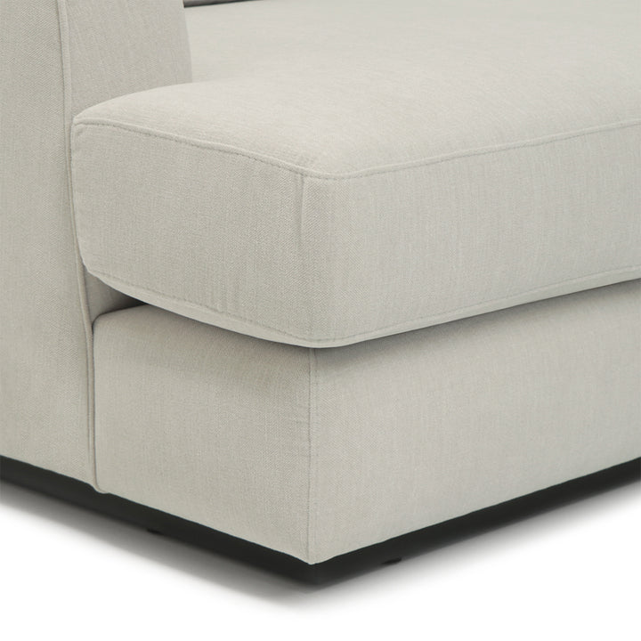 Projetado com um tecido suave e rodapé em madeira escura, este modelo oferece design moderno e elegante que se encaixa em qualquer ambiente. O puff independente torna o sofá versátil, conseguinte aliar um efeito de chaise longue em qualquer um dos lados.