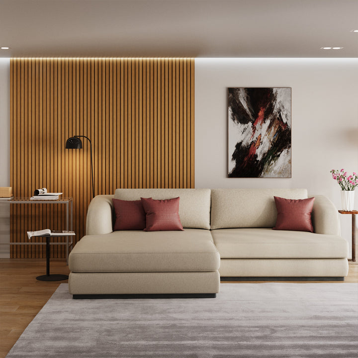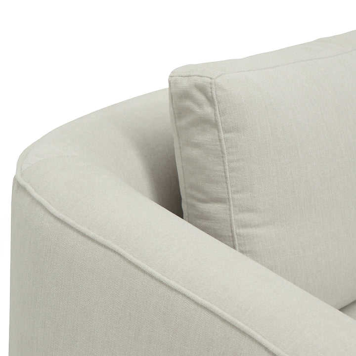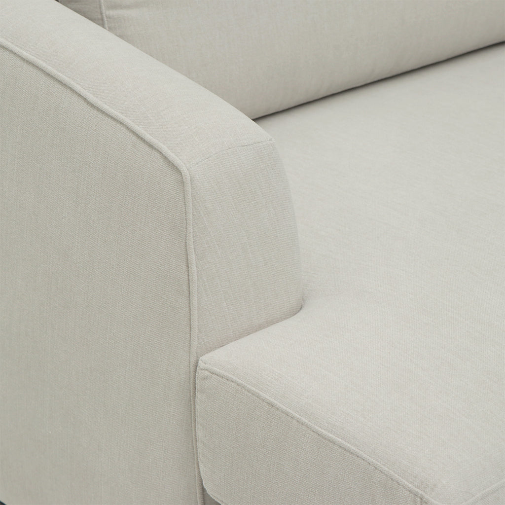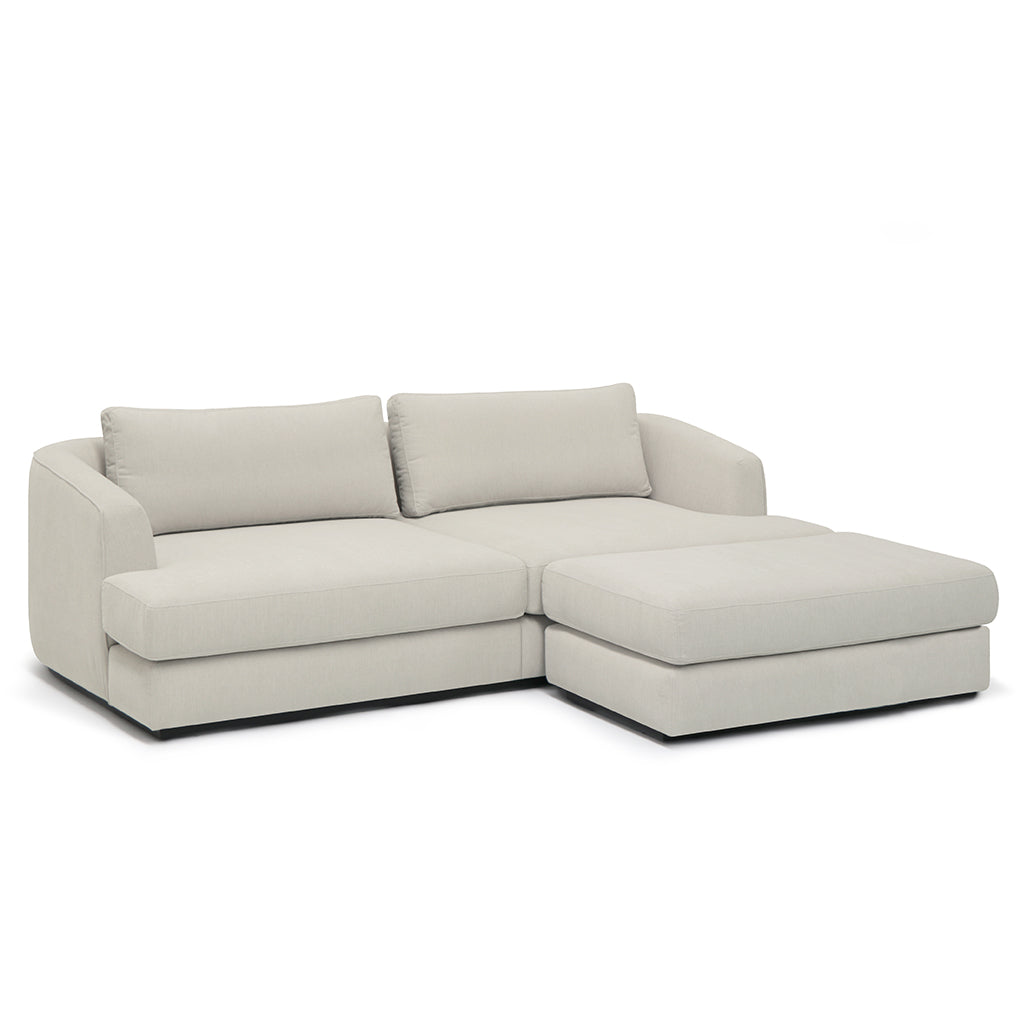 Projetado com um tecido suave e rodapé em madeira escura, este modelo oferece design moderno e elegante que se encaixa em qualquer ambiente. O puff independente torna o sofá versátil, conseguinte aliar um efeito de chaise longue em qualquer um dos lados.